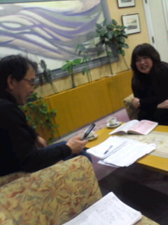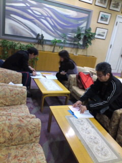 ロビーでは担当の東郷先生がインストラクターのリーダーの方と、明日の打ち合わせをしました。