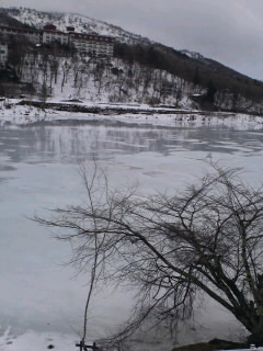 雨のため、白樺湖の氷が溶けていました。