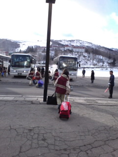 ホテルに別れを告げてゲレンデに向かいます。