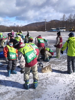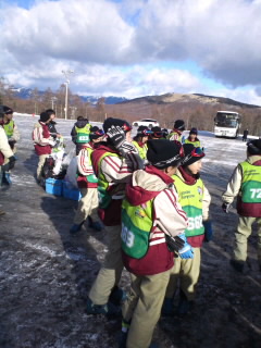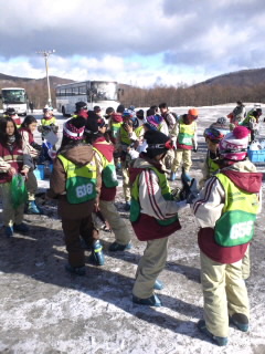 ゲレンデに到着したら靴の履き替えです。