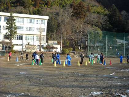ところどころに、雪のように塩化カルシウムが残っていました。