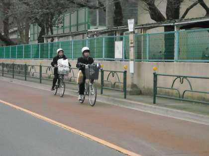 上からも自転車や車の送迎で沢山の生徒が来ています。