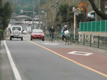 陣馬街道は交通量が多いので自転車走行には気を付けましょう!