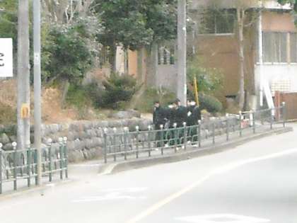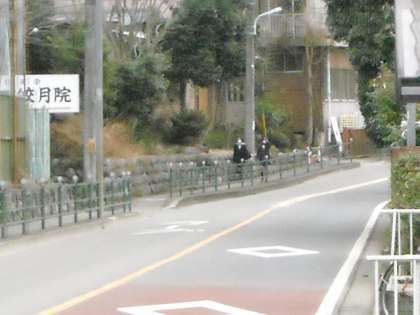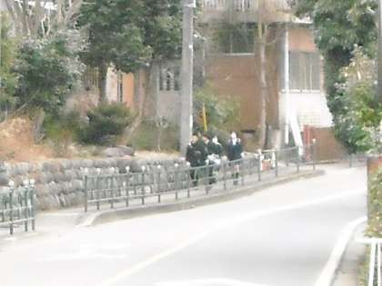 皎月院側の道を歩いてで登校する生徒たちです。