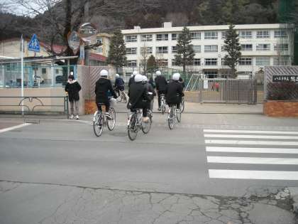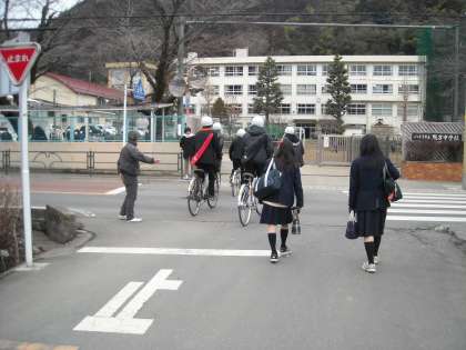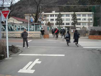 校門前の横断歩道は、素早く渡らなければなりません。