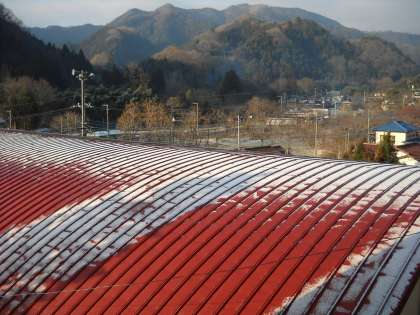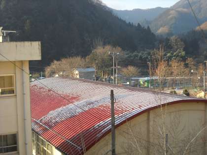 今日の体育館の屋根は、霜降りではなく残雪でした。