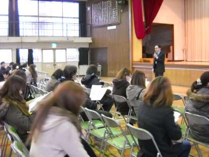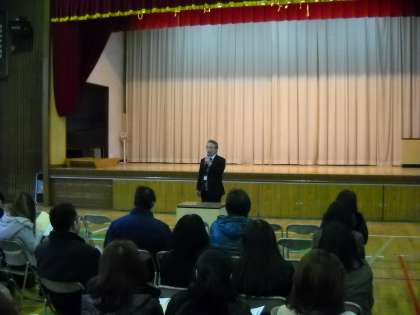出張の校長先生に代わって、副校長先生が挨拶をしました。