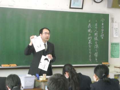 国語の馬場先生が市内2・3年目の国語科の先生に授業を見せる師範授業を行いました。