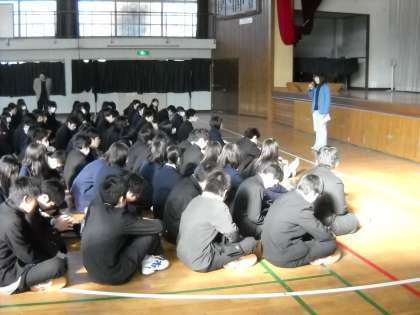 残りひと月ほどになった中学校生活での心構えについて、学年主任の大神田先生からお話がありました。