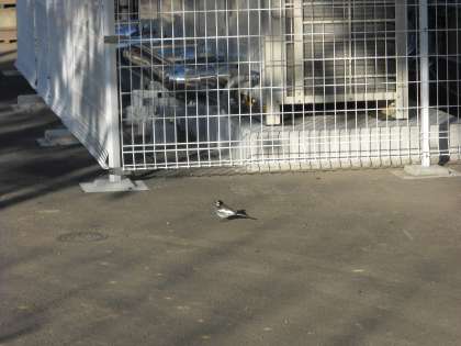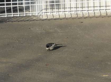 校長室前の室外機のところに、ハクセキレイがやってきました。