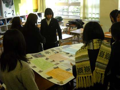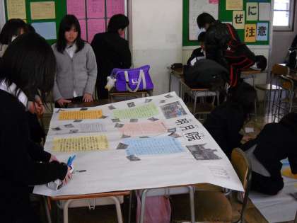 2年2組は清掃の合間を活用して、掲示物のまとめをしていました。
