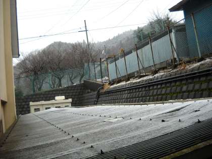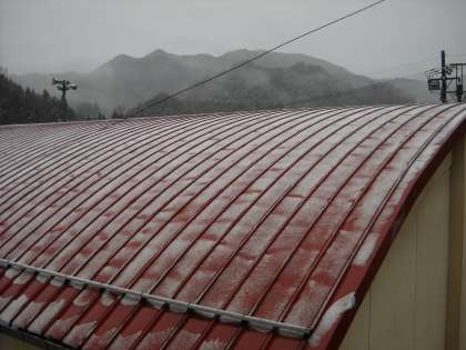雨の朝を迎えていますが、屋根に積もった昨日の雪がなかなか消えません。