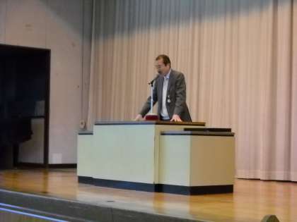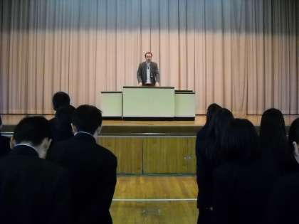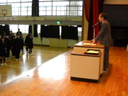 東日本大震災を振り返り、恩方地区の防災において、中学生として何が出来るのかを問いかけました。
