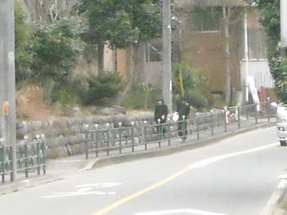 陣馬街道を徒歩で登校する生徒もたくさんいます。