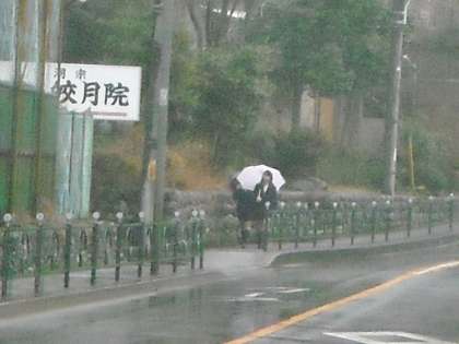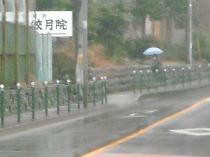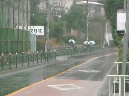 陣馬街道を直進して歩いて来る生徒も大勢いますが、今日はみんな傘をさしています。