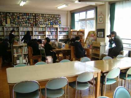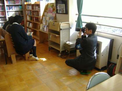 八王子市の広報誌で使う図書室のイメージ写真を市の広報担当の方が撮影に来ました。