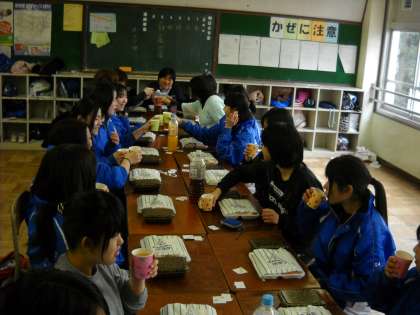 試合後教室で昼食をとりながらのお別れ会となりました。