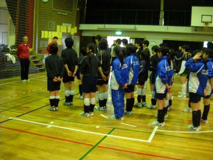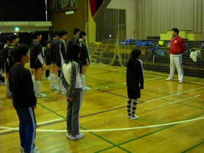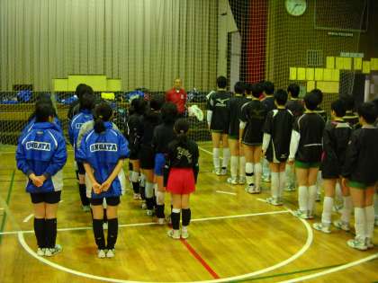 八王子実践中学校のバレーボール部と、恩方地区の小学生のバレーボールチームも交えて開会式です。
