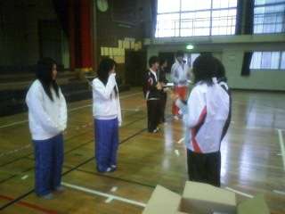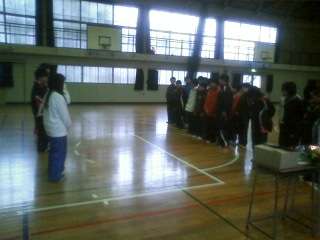 雨が降ってきたので体育館でお別れセレモニーをしました。