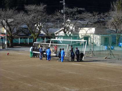 練習の後に、サッカーコートの準備を手伝っていました。