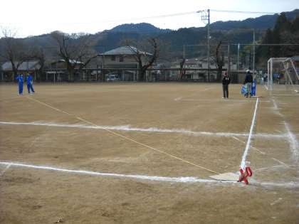 グラウンドでラインを引いていました。