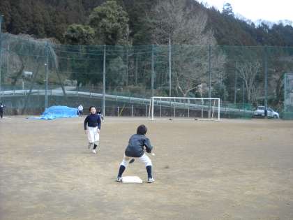 アップのあとに、牽制球と盗塁の練習です。