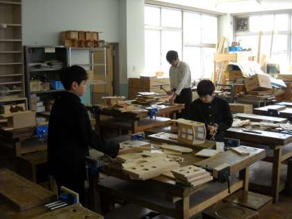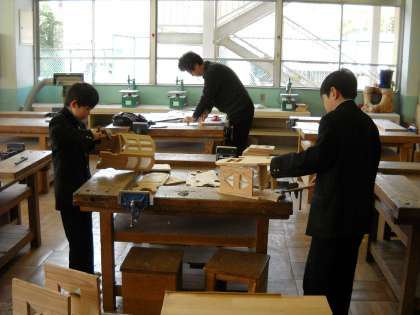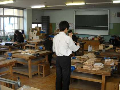 木工室で木材を扱っていました。