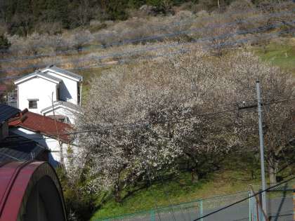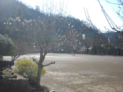 モクレンやウメの花も風に飛ばされずに咲いていました。