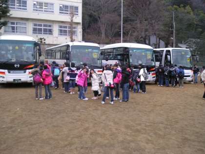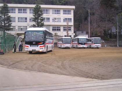 4台の大型バスに乗り込んで、西八王子インター経由で中央高速に向かいました。