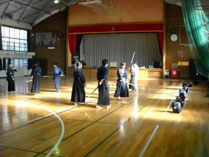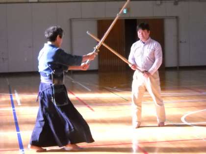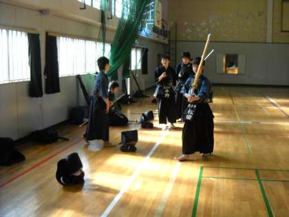 休憩時間に、顧問の菅原先生とコーチの神子先生が、剣の道についての深い話をしているようでした。