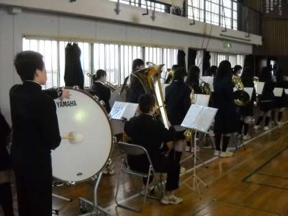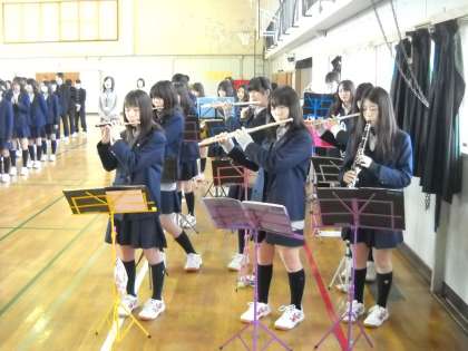 はじめに吹奏楽部の伴奏で校歌斉唱です。