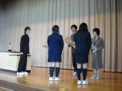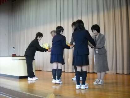 先生方の挨拶の後、花束贈呈がありました。