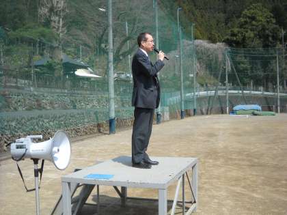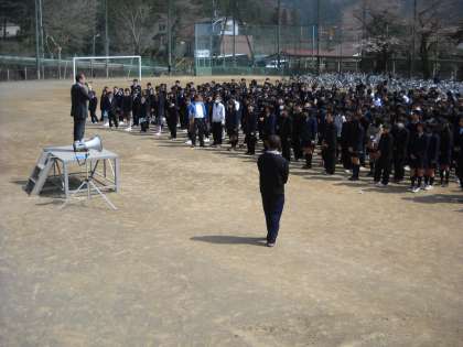 校長先生・担当の粕谷先生の話を真剣に聞いていました。