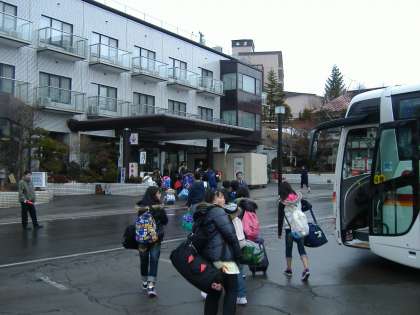 は雪景色ですが、昨日の雨で、だいぶ雪が溶けているようです。