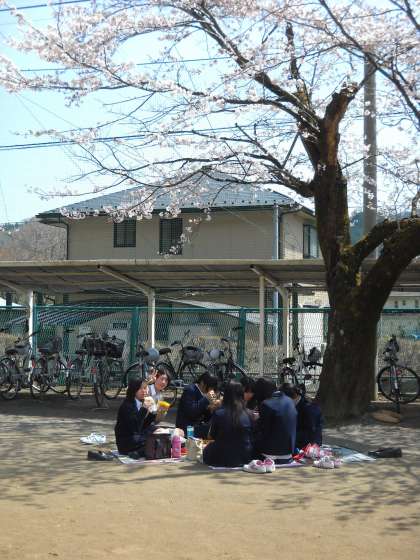 思い思いの場所で食事をします。