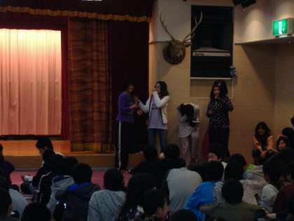 1日目の夜、大広間に集まって楽しいレクリェーションをしました。