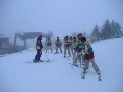 初めての人でも、2日目の午後になれば、頂上近くでも滑り降りられるようになりました。