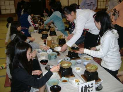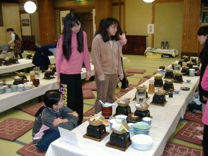 食べた後は、同じ食器を重ねるなど、簡単に後片付けをします。