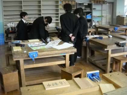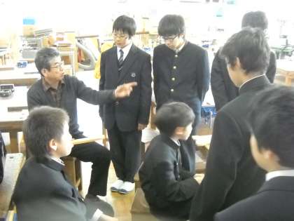 木材の特質について、顧問の橋本先生からレクチャーを受けていました。