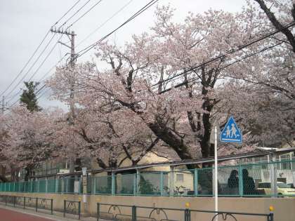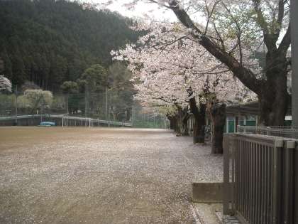 流石の桜も散り始めました。校庭も薄ピンクに染まっています。