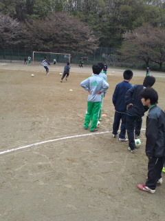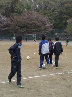 9時30分から中山中学校グラウンドでキックオフです。試合前の練習にも熱が入ります。
