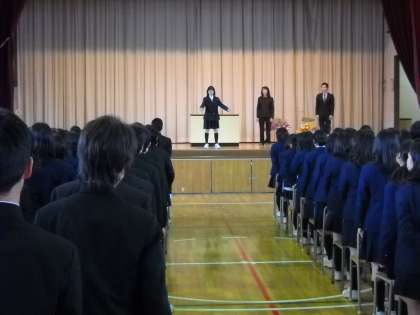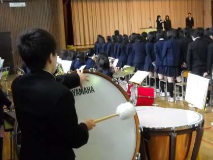 最後に吹奏楽部の伴奏で、校歌斉唱です。