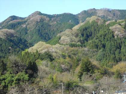 標高の高い所の緑やヤマザクラのピンクがきれいです。
