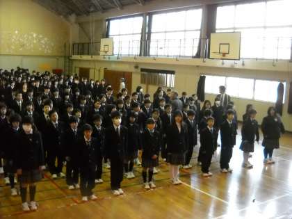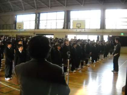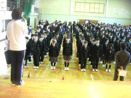 今日は全校朝礼の日です。