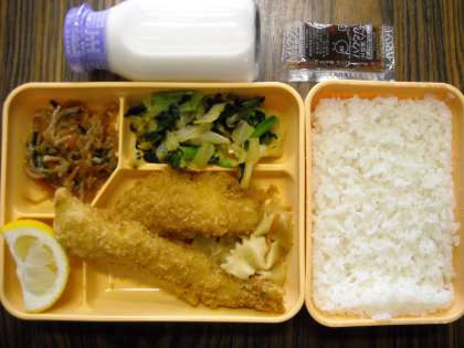 ごはん・ミックスフライ・パスタソテー・野菜ののり和え・しらたきのチャプチェ・