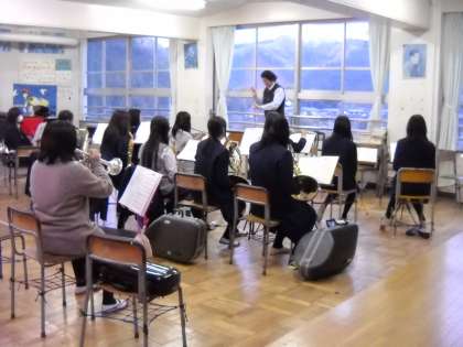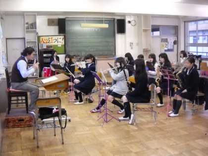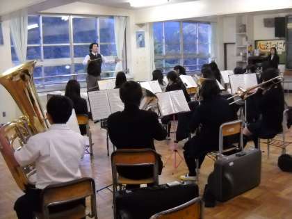 顧問の竹信先生から、音程を合わせるポイントの指導を受けていました。