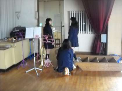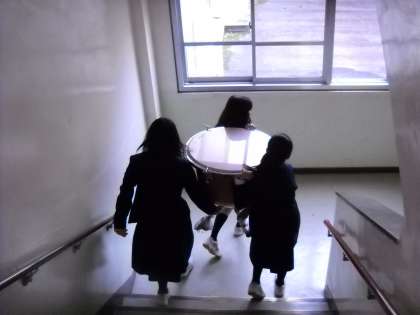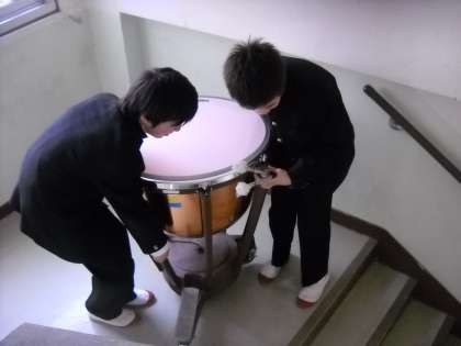 勇払中の歓迎会の時の演奏のために、楽器を運んでいました。
