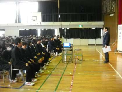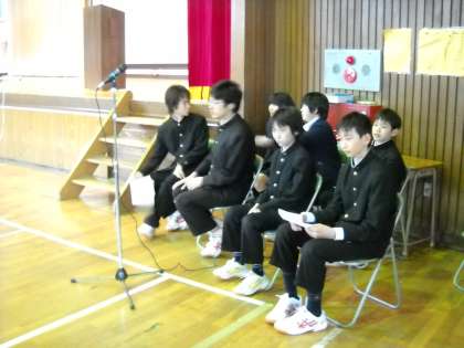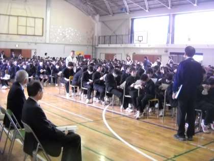 勇払中学校との交流会の前に、5時間目に体育館で行われました。