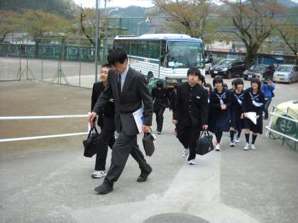 勇払中学校の3年生は、修学旅行の取組みの一つとして八王子市役所を訪問した後、バスで恩方中を訪れ、交流会を行います。