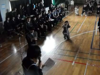 続いて勇払中学校の生徒がまとめたパワーポイントにより、苫小牧市と勇払中学校が紹介されました。